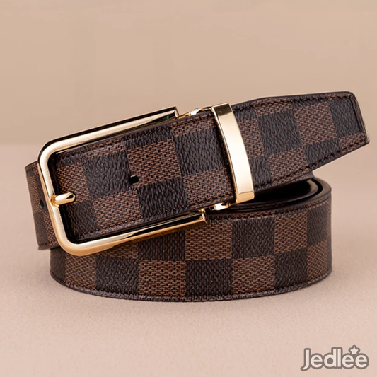 Trendy Versatile Genuine Checked Leather Belt = Alloy Pin Buckle